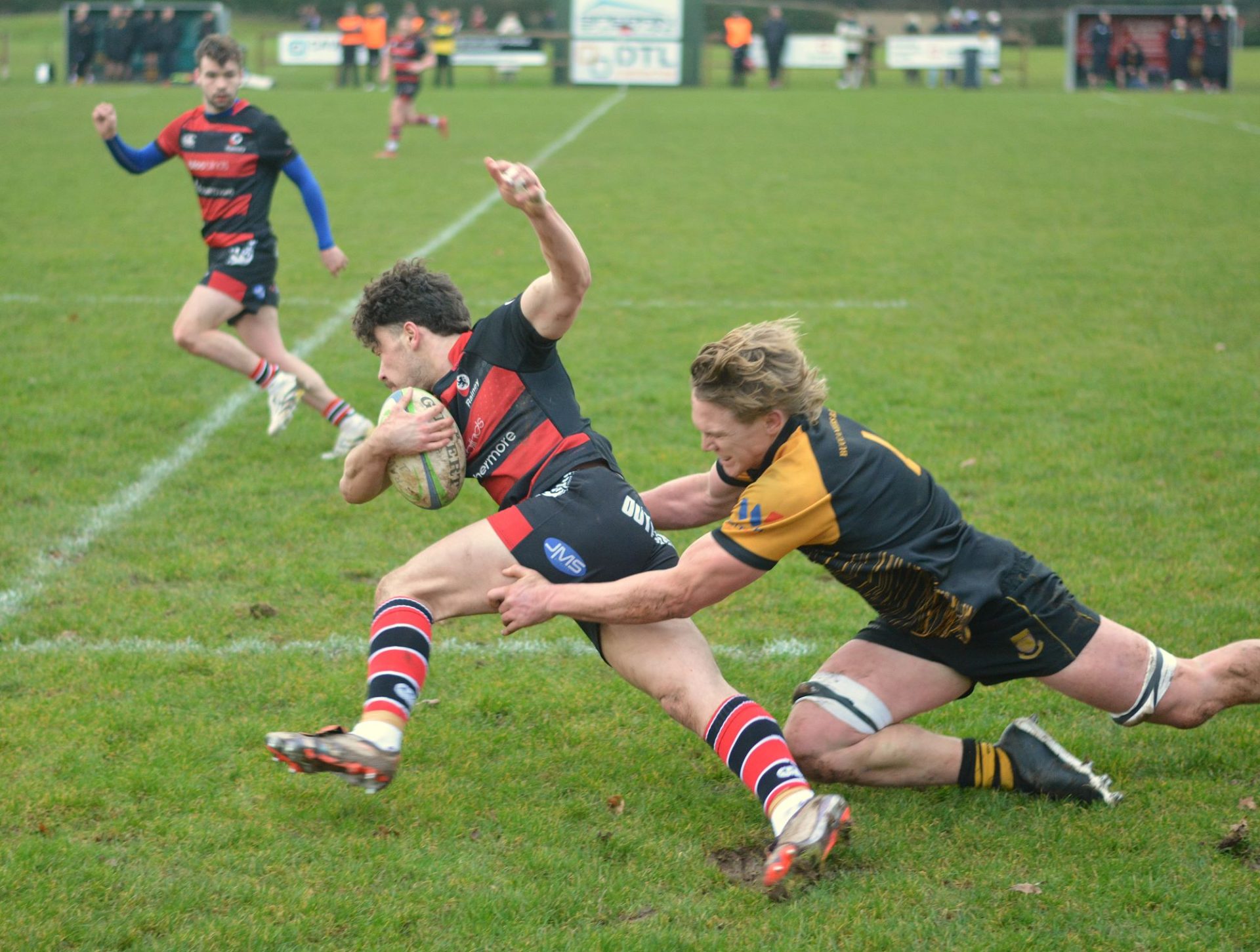 Buccs restart went dead and their pack that had utterly dominated the scrum for 50 minutes were somehow now being pinged by the referee, giving further encouragement to the beefier home unit on the testing surface. Adam Cooper was the unlucky player to be sin-binned as a consequence of these penalties three minutes from time and Rainey promptly profited. The homesters took full advantage and kicked a penalty to within five metres of the Buccs line. From there they mauled over for O’Neill’s match-winning try.