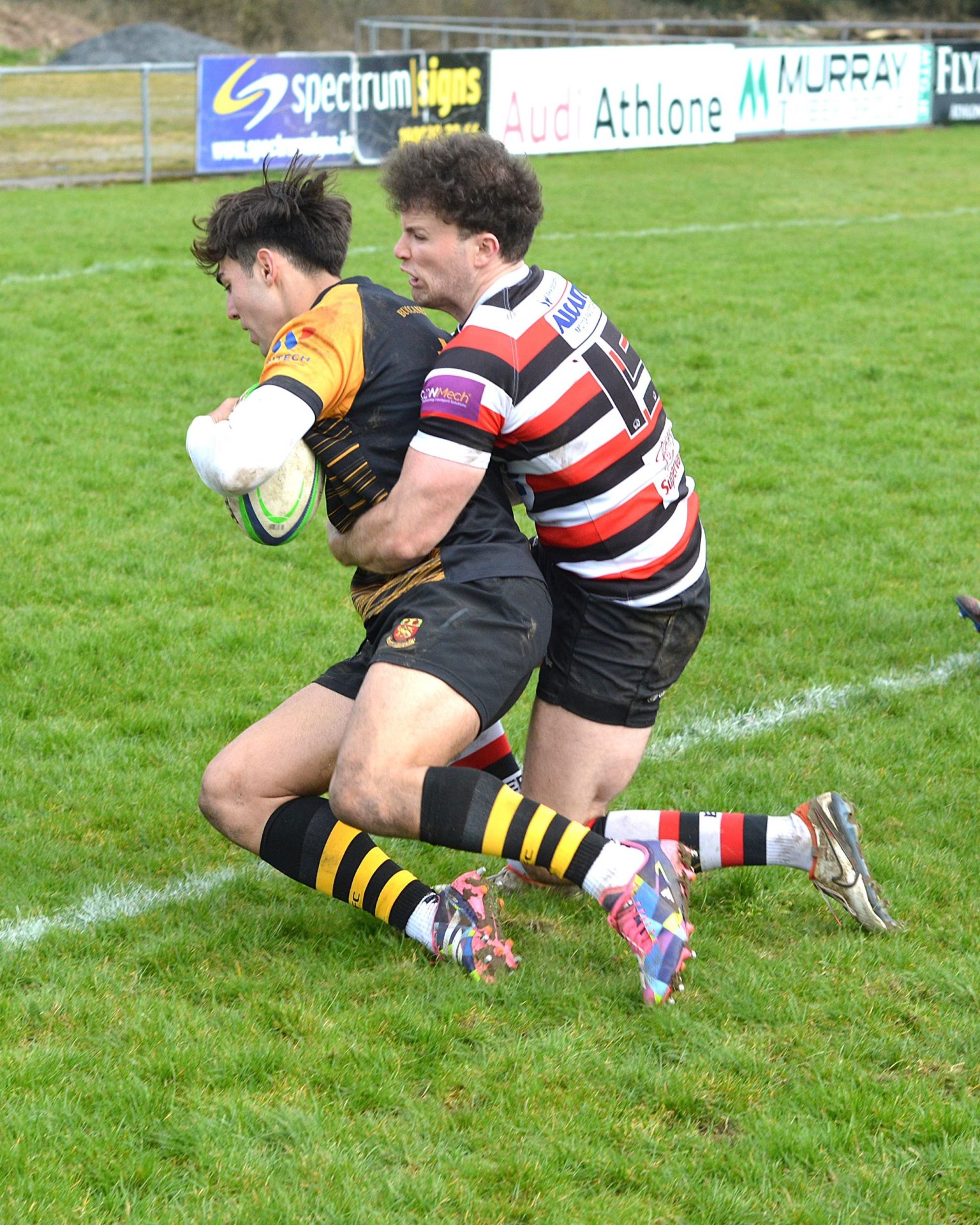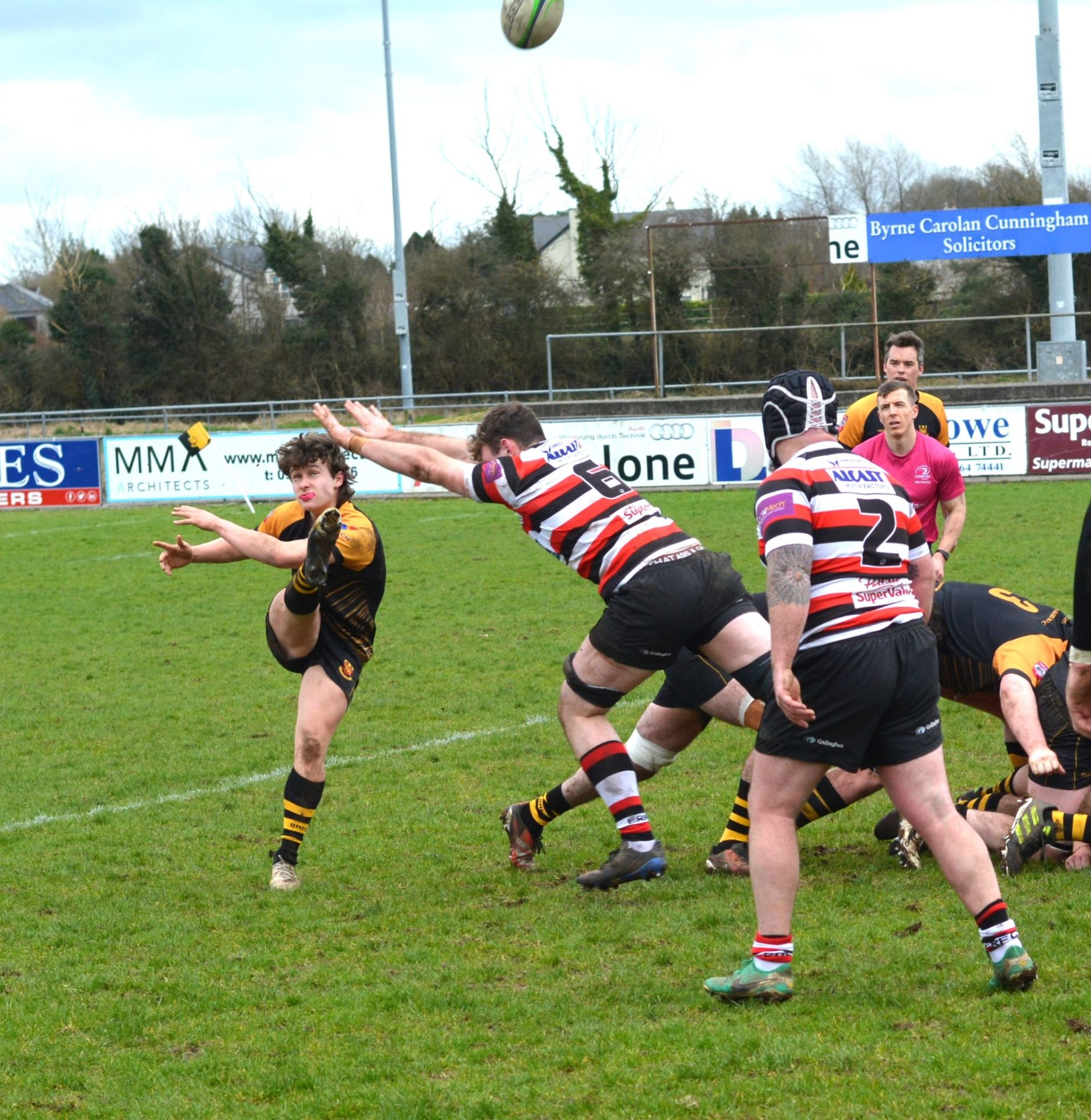 The south-easterners continued to enjoy the majority of territory but Buccs defended well, with Dan Donovan making two crucial turnovers. However, his work was undone when McDonald’s no look pass was intercepted by Ivan Jacob to run in for a gift 21st minute converted try at the posts. Jacob was then unlucky not to add his second try when his kick ahead was too strong. Winning a scrum against the head, Enniscorthy piled forward and following several pick and goes Lee Treacy got over the home line for a converted 29th minute try which gave them a 21-7 lead.