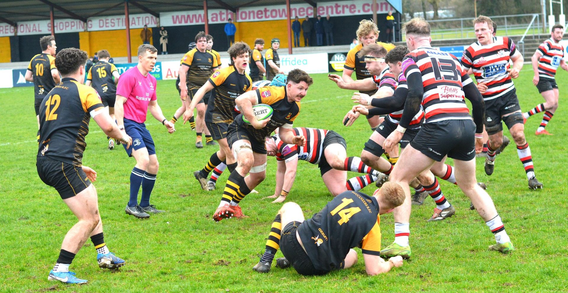 Buccs made an instant retort with Abel Bouwens sending Tom Cotton off and running and he fed Murphy-Sweeney for a try wide on the left after 9 minutes. Gearoid McDonald landed an excellent conversion against the wind.