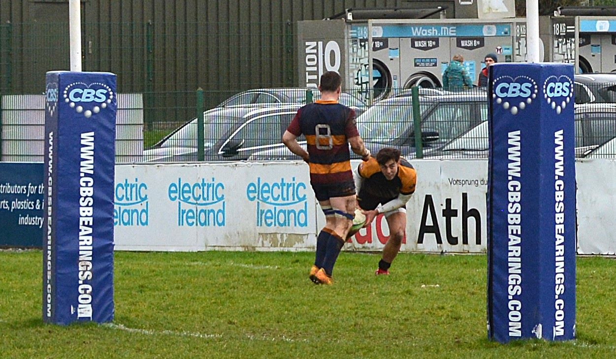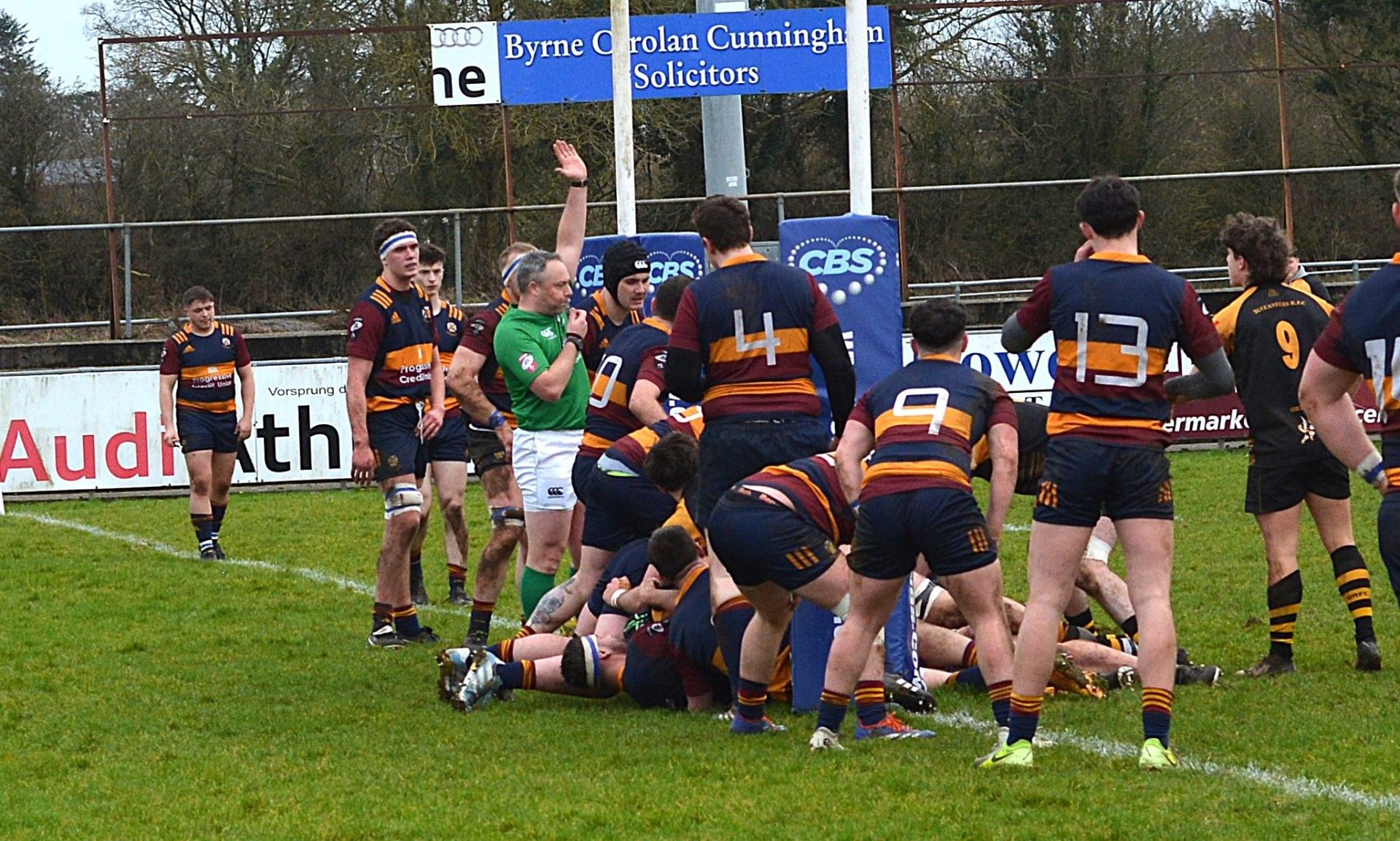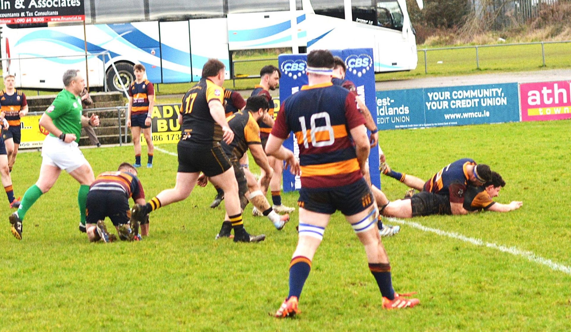 The Pirates made the early running but did not make the most of promising territory especially when Orrin Burgess was unattended wide on the left flank on a couple of occasions. However, their sustained pressure gained reward on 16 minutes when Charlie Byrne grounded the ball following a tapped penalty by Sean Glennon and Gearoid McDonald added the conversion.